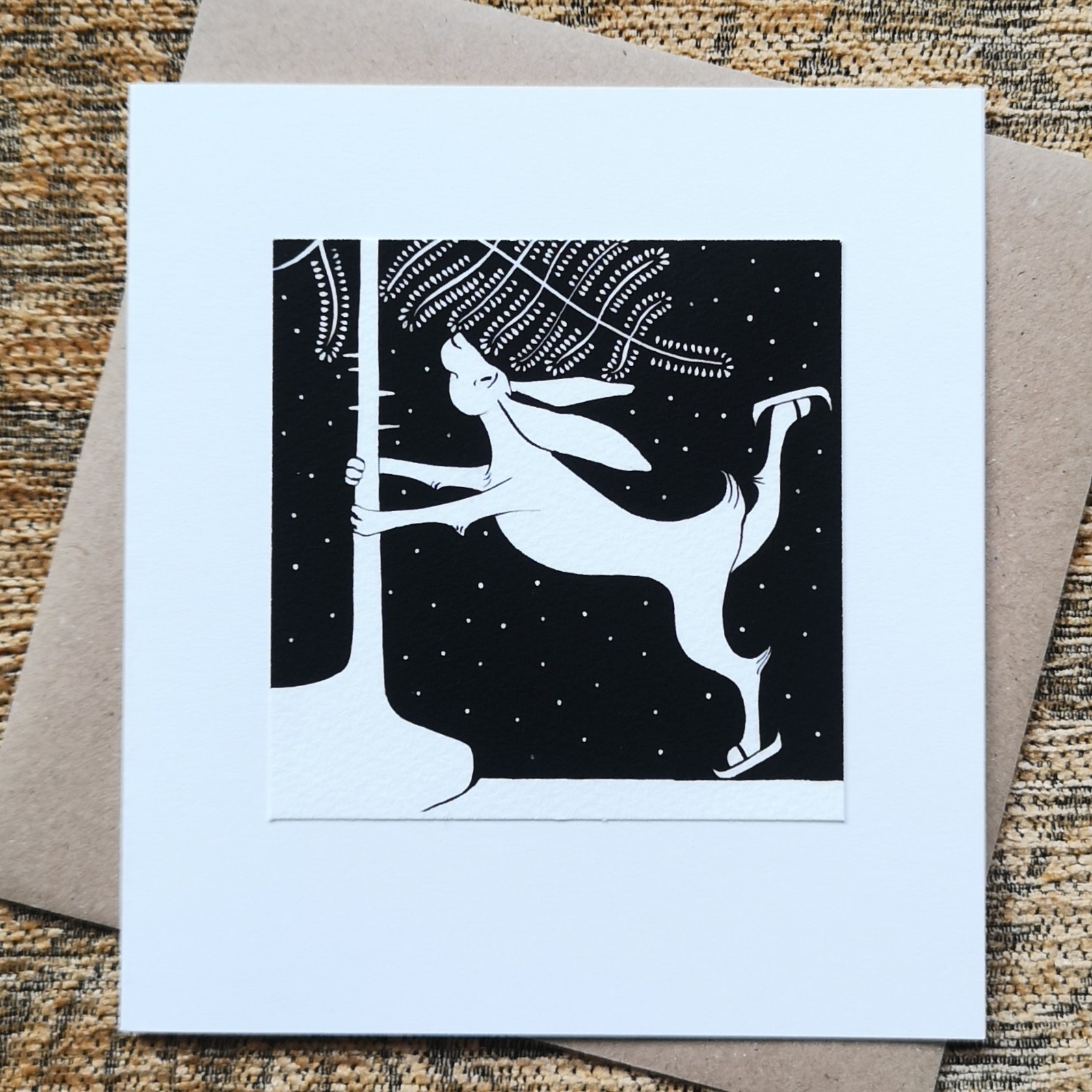 Ice skating hare ~ Christmas Card