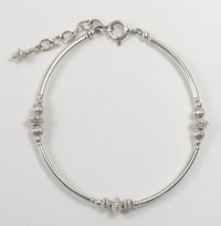The textured feature beads and smooth curves give this lovely bracelet the look of an ornate bangle but it is much easier to wear.